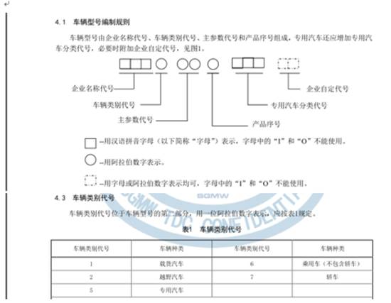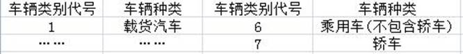 2.车辆类别代号---车辆型号第二部分,用一位阿拉伯数字表示,举例如下。