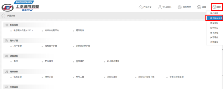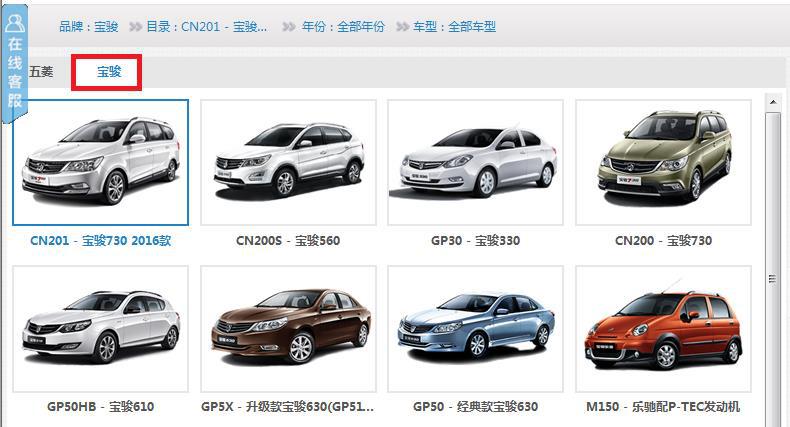 1.品牌-车系:登录售后发布系统后,在主界面上单击“电子配件目录”,进入后即可看到 SGMW的两大品牌“五菱”和“宝骏”,再点击各自品牌,即可看到该品牌下的所有车系。