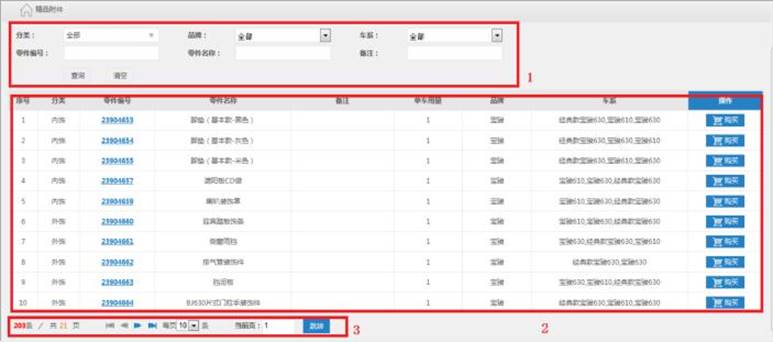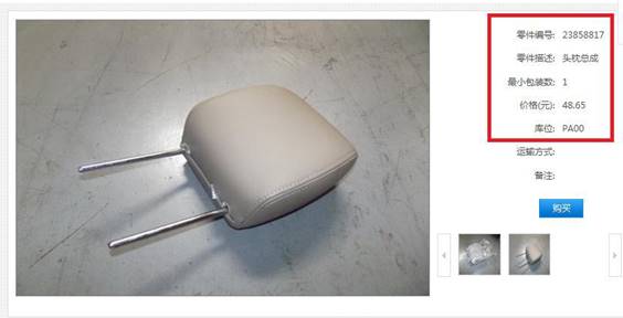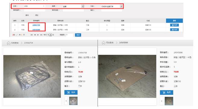 2.零件信息详情区---主要显示零配件的具体详细信息,如点击配件号可进入该配件的详情页,进 一步查询该零件的其他信息(实物图片,价格等)。