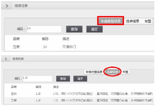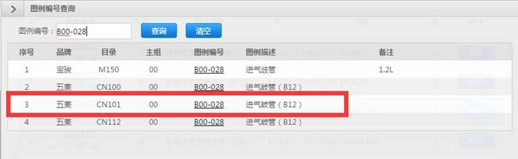 n 步骤二:依据车型配置查询出目标配件所在的主目录图例号信息,有两种方法。