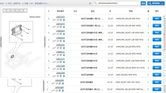 (案例二)车辆VIN号:LZWADAGA0E4202931 待查询配件号 :发动机控制模块